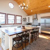 • Chefs kitchen with stainless steel appliances, ice-machine, beverage frig, microwave drawer, walk-in pantry, 9 x 5 solid walnut island, kitchen office area