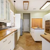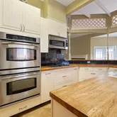 - Room Description: The large kitchen with a central island and two sinks is open to the living area across a breakfast bar.