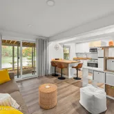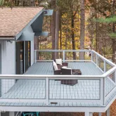 large windows, opening to an expansive deck overlooking...Waterfront Haven on Robinson Pond - Newly Reimagined, Sold with Furnishings,