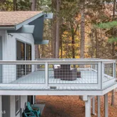 large windows, opening to an expansive deck overlooking the lake—a perfect spot for coffee at