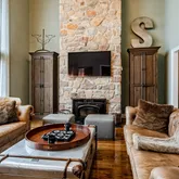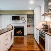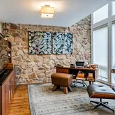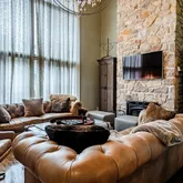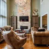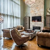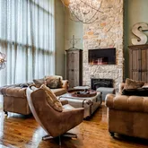 The heart of the home is a gourmet kitchen featuring striking concrete countertops, ample cabinetry, and seamless flow into the main living spaces—ideal for both everyday living and entertaining. Multiple gathering areas are enhanced by three fireplaces, adding warmth and character throughout.