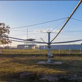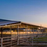 - 160 round pen with solid steel walls, lighted with sprinklers