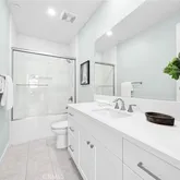 - Room Bathroom Features: Bathtub, Shower, Shower in Tub, Double Sinks in Primary Bath, Exhaust fan(s), Linen Closet/Storage, Main Floor Full Bath, Privacy toilet door, Quartz Counters, Separate tub and shower, Soaking Tub, Vanity area, Walk-in shower