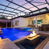 - Pool Features: Heated, In Ground, Lighting, Other, Screen Enclosure, Tile
