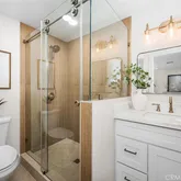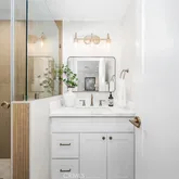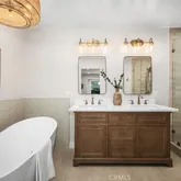 - Room Bathroom Features: Shower in Tub, Double Sinks in Primary Bath, Dual shower heads (or Multiple), Exhaust fan(s), Quartz Counters, Remodeled, Separate tub and shower, Soaking Tub, Upgraded