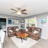 - Interior Features: Attic Stairs Disappearing, Cable Available, Ceiling Fan, Ceiling Smooth, Smoke Detector, Window Trmnts-Some Remain, Countertops – Quartz