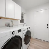 - Laundry Appliances: Inside, Sink, Dishwasher, Disposal, Free-Standing Gas Range, Free-Standing Refrigerator, Gas Water Heater, Range Hood, Tankless Water Heater, Dryer, Washer
