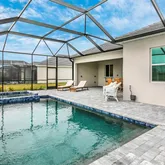 - Pool Features: Gunite, Heated, In Ground, Salt Water, Screen Enclosure