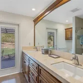 - Room Bathroom Features: Double sinks in bath(s), Double Sinks in Primary Bath, Soaking Tub, Stone Counters, Tile Counters, Walk-in shower