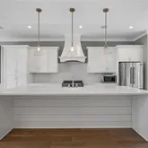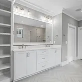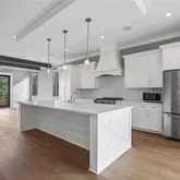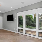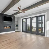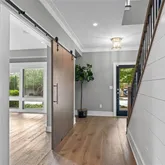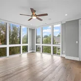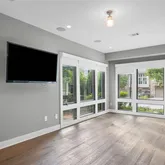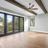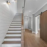 This home is bathed in natural light from floor-to-ceiling windows, all equipped with custom motorized shades for effortless comfort and privacy. Design highlights include weathered oak wide-plank floors, custom cabinetry, a shiplap accent wall, a shiplap fireplace controlled by remote, and custom closets—combining style, comfort, and sophistication throughout.