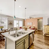 - Room Description: two tone freshly painted cabinets, large island with pendant light, stainless steel appliances, under cabinet lights