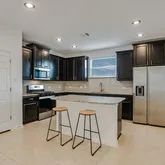 - Interior Features: Breakfast Bar, Ceiling Fan(s), Double Vanity, High Ceilings, Interior Steps, Kitchen Island, Main Level Master, Quartz Counters, Walk In Closets