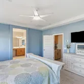 - Interior Features: Walk-in Pantry, Quartz Countertops, High Speed Internet, Smart Home, Double Vanity, Master Downstairs, Eat-in Kitchen, Breakfast Bar, 9+ Flat Ceilings, No Interior Steps, Kitchen Island, Pantry, Full Bth Master Bdrm