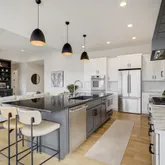 sophistication throughout the main living spaces. The gourmet kitchen anchors the home with an oversized island, granite