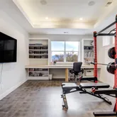 wet bar, workout or recreation room, flex rooms, and a secure vault room. An attached in-law suite provides a private living