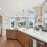 - Room Description: Gourmat kitchen with abundance of cabinets, stainless appliances include double oven, gas cook top, dishwasher, microwave and refrigerator, quartz countertops, large pantry, center island with breakfast bar adjacent eating space