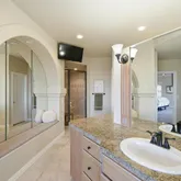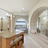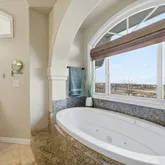- Room Description: 5 piece with jetted oval tub, large walk in shower with dual shower heads, travertine floor, dual vanities
