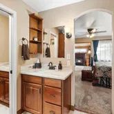 - Interior Features: Beamed Ceilings, Ceiling Fan(s), Granite Counters, Kit/Din Combo, Kitchen Island, Master Downstairs, High Ceilings, Rev Osmosis System, Walk-In Closet(s), Wash/Dry Connection, Water Pur. System, Wet Bar