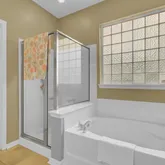 - Room Master Bedroom Features: Ceiling Fan(s), Garden Tub/Shower, Split, Walk-In Closet(s)