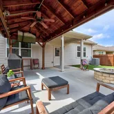 - Exterior Features: Rain Gutters, See Remarks, Fire Pit