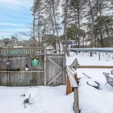 Outside, the fully fenced yard with deck, features an outdoor...Step into the timeless charm of Olde Cape Cod at 13 Rogers Rd, Harwich. This delightful home has classic character creating the perfect retreat.