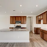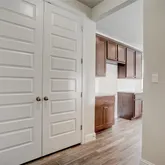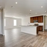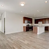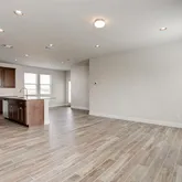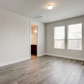 - Elegant wood-grain luxury flooring paired with plush carpet