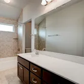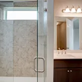 - A spa-inspired primary ensuite featuring dual vanities and a striking floor-to-ceiling tiled shower
