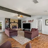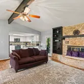 - Interior Features: Beamed Ceilings, Breakfast Bar, Bookcases, Open Beams Beamed Ceailings, Ceiling Fan(s), Separate Formal Dining Room, Granite Counters, Kitchen Island, Multiple Living Areas, Multiple Dining Areas, Main Level Master, Quartz Counters