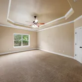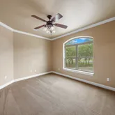 - Floor: Carpeting, Stained Concrete