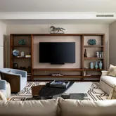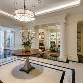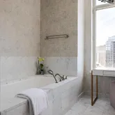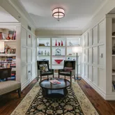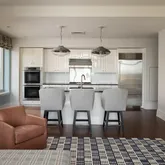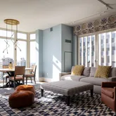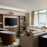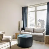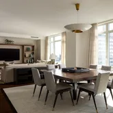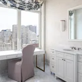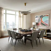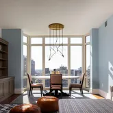 Expansive living and dining areas are framed by floor-to-ceiling windows that capture Rittenhouse Square park views from every window in the residence. The eat-in chef’s kitchen is appointed with custom cabinetry, professional-grade appliances, and a casual dining area with floor to ceiling windows overlooking Rittenhouse Square. A butler’s pantry with a wet bar connects seamlessly to the entertaining spaces.
