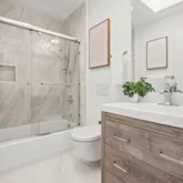 - Bathroom: Double Sinks, Stall Shower, Skylight, Solid Surface, Tile, Tub, Updated Bath, Dual Flush Toilet, Primary - Stall Shower(s)