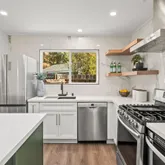 - Kitchen: Dishwasher, Hood Over Range, Microwave, Exhaust Fan, Oven Range - Gas, Refrigerator