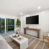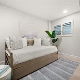 This down-to-the-studs renovation includes all-new plumbing, a tankless water heater, new electrical panel and wiring, and impact-resistant windows and doors. Additional upgrades feature LED lighting throughout, custom closet systems in both bedrooms, plantation shutters, and curated wall treatments for added charm and character.