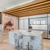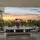 calacatta gold and calacatta black marble floors. Floor-to-ceiling 10 ft high sliding glass doors opening to 11 ft deep ocean view terraces.