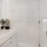 calacatta gold and calacatta black marble floors. Floor-to-ceiling 10 ft high sliding glass doors opening to 11 ft deep ocean view terraces.New Construction building designed by L’Atelier de Jean Nouvel in the heart of Miami Beach. Large 2 Bedroom + 2.5 Bath turnkey designer residence. Features include custom built-ins,
