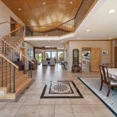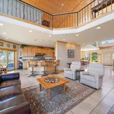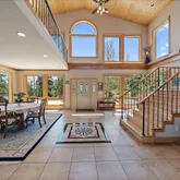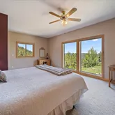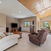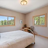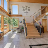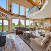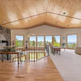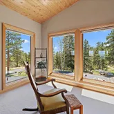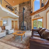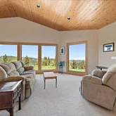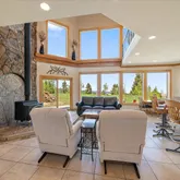 - Room Description: Moss rock hearth, wood burning stove, two stories of windows with views!