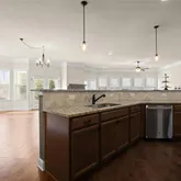 - Kitchen Features: Breakfast Bar, Cabinets Stain, Kitchen Island, Pantry, Stone Counters, View to Family Room