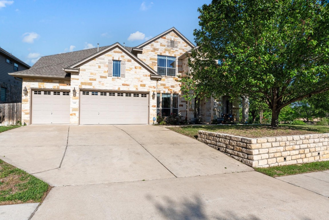 The large private back yard offers plenty of room for a negative edge pool. The three-car garage and the sizable driveway provides plenty of room for vehicles and more. Located near desired Deer Creek Elementary, Cedar Park H.S, Cypress Canyon Park , Hike and Bike Trail, HEB, Lakeline Mall, and so much more!! Primary shower (2017), 2 water heaters (2022) Roof (2018) Wood floors (2020)