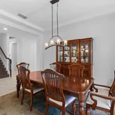 - Interior Features: Crown Molding, Eating Space In Kitchen, High Ceilings, Kitchen/Family Room Combo, Living Room/Dining Room Combo, Open Floorplan, Primary Bedroom Main Floor, Stone Counters, Thermostat, Walk-In Closet(s)