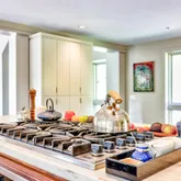 • Appliances: Built-In Microwave, Built-In Range, Commercial Range, Dishwasher, Exhaust Fan, Microwave, Oven/Range - Gas, Six Burner Stove, Stainless Steel Appliances, Water Conditioner - Owned