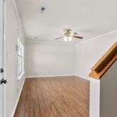 - Interior Features: Attic Stairs Disappearing, Cable Available, Ceiling Fan, Countertops-Solid Surface, Smoke Detector, Window Trmnts-Some Remain, Walk In Closet, Split Floor Plan