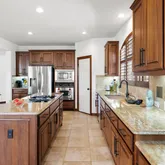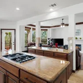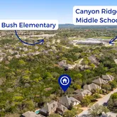 The kitchen offers abundant...Located behind the gated neighborhood of River Heights Overlook, this beautifully custom-upgraded home offers exceptional space, flexibility, and sweeping Hill Country views just a short walk to Laura Welch Bush Elementary and Canyon Ridge Middle School. Thoughtfully designed with 5 bedrooms and 4 bathrooms across 4,105 square feet, the home features soaring ceilings, 8-foot doors, oversized crown molding, and an open floor plan that lives far larger than its footprint.