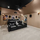 The kitchen offers abundant storage and workspace, stainless appliances, and seamless connection to the main living areas, creating an ideal layout for both everyday living and entertaining. A second bedroom and full bath on the main floor provide flexibility for guests or multigenerational living, while upstairs features a spacious game room, custom theater room, and three additional bedrooms with two full bathrooms.