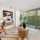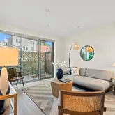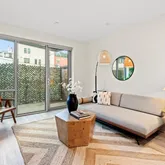 Located on the quiet side of the building and one floor above street-level, unit 105's oversized outdoor balcony spans the width of the entire unit and has separate access both from the living room and primary bedroom. This home is modern and stylist from top to bottom and enjoys wide-plank hardwood and large windows throughout, high end appliances, Elfa closet systems, and an in-unit washer and dryer to make a complete package. Another unique feature of this home is its easy access to its assigned parking space via stairway directly next to this unit's front door making your commute from home to car as quick as possible.