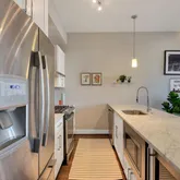 Live the high life in a light filled luxury condo on Capitol Hill! This expansive, second floor 2 bed 2 bath has it all: lofty ceilings, an expansive island with marble waterfall countertop, separate dining space, office nook, gleaming hardwoods, marble tiled bathrooms, private outdoor space, and recessed lights throughout. The primary suite can accommodate a king size bed and boasts dual closets, dual vanities, a large walk in shower with a rainfall showerhead, and your own balcony where you can take in the sun. Enjoy cooking elaborate meals in the chef’s kitchen with a five burner gas range, marble backsplash, pendant lighting, plenty of storage, stainless hood vent, french door fridge with in-door ice and water, dishwasher, microwave, garbage disposal, myriad counter space, and a dedicated wine fridge. The second bedroom is large enough to fit a queen sized bed, desk, & more - great for work, play, guests, or dedicated space for a family member. Bonus: you’ll find a large storage closet there - a dynamic area to store seasonal items, bikes, instruments, and more. The hall bath offers a marble vanity and a full size tub and shower. Add the built in bluetooth surround sound, stacked & front loading in-unit w/d, a newer HVAC and you’ll agree this 2015-build lives up to its lustre. A five-unit boutique building with pet friendly policies, relaxed rental restrictions, and a low condo fee under $250 that includes water and gas makes this an investment worthy asset. Say yes to over 1,000 square feet of living space just a 7 minute, 2 block walk to the Potomac Ave Metro, Harris Teeter, Barrack’s Row, and The Roost Food Hall. Enjoy nearby neighborhood favorites like Mangialardo’s (rumored to have the best subs in town since 1953!) and Trusty’s Full Serve bar, a reliable watering hole with live music. You’ll never tire of exploring one of the country’s most treasured neighborhoods with its rich history and culture.