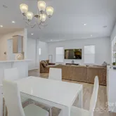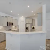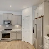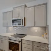 Stunning Like-New End-Unit Townhome backing up to woods and nestled in the desirable new community, Pringle Towns in the Steele Creek area of Charlotte, NC. Discover modern, low-maintenance living in this beautiful home, recently built in the Pringle Towns community. One of the largest plans in the neighborhood, this 1,835 sq ft, 2-story townhome features 3 large bedrooms, 2 full baths upstairs and a convenient half bath on the main level. Quality finishes throughout including stainless steel appliances, quartz counters, 42" gray cabinetry with generous storage, modern glass tile backsplash, tile in all full baths and laundry, waterproof enhanced vinyl plank on the main level, and true hardwood stairs from the foyer.