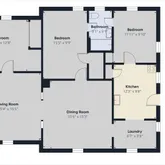 - Room List: Living Room, Primary Bedroom, Kitchen, Bedroom 2, Bedroom 3, Breakfast Room, Laundry