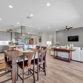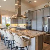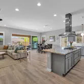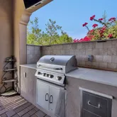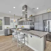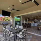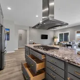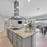 The gourmet kitchen includes a gas cooktop, stainless appliances, custom cabinetry, and smart storage solutions....Welcome to your dream retreat in Trilogy at Vistancia!