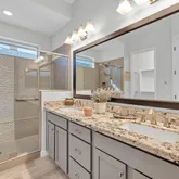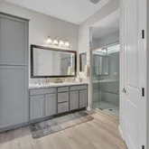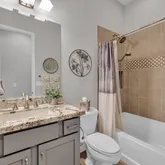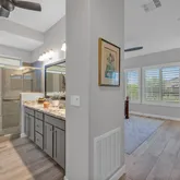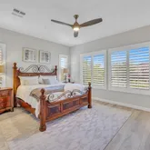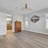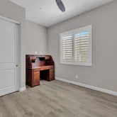 This rare three bedroom Montage Model offers 2,384 square feet of luxury living with upgrades that rival a model home. Move-in ready and able to accommodate a short close, this three bedroom residence features wood look tile flooring throughout, plantation shutters, and an open great room that flows to an extended patio with electric blinds.