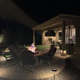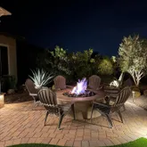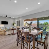 The gourmet kitchen includes a gas cooktop, stainless appliances, custom cabinetry, and smart storage solutions. Two private primary suites feature upgraded tiled showers, while a third bedroom and full bath add flexibility for guests. A versatile flex area is perfect for an office, craft room, or additional living space. Outdoors, enjoy a backyard designed for entertaining with a built-in BBQ, TV hookup, ceiling fans, extended pavers, and a cozy fire pitperfect for relaxing and taking in scenic Arizona sunsets. Sellers also have virtual images from a pool company with proposed virtual pictures for a pool, spa, and integrated fire pit,ideal inspiration for creating your own backyard oasis. Additional highlights include an epoxy coated garage floor with cabinets, plus a paver driveway and walkway that enhance curb appeal.